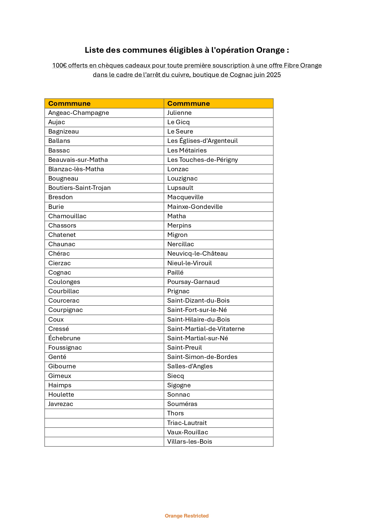 100€ offerts en chèques cadeaux Pour toute première souscription à une offre Fibre Orange (1) dans votre boutique de Cognac. Offre limitée aux 50 premières souscriptions.