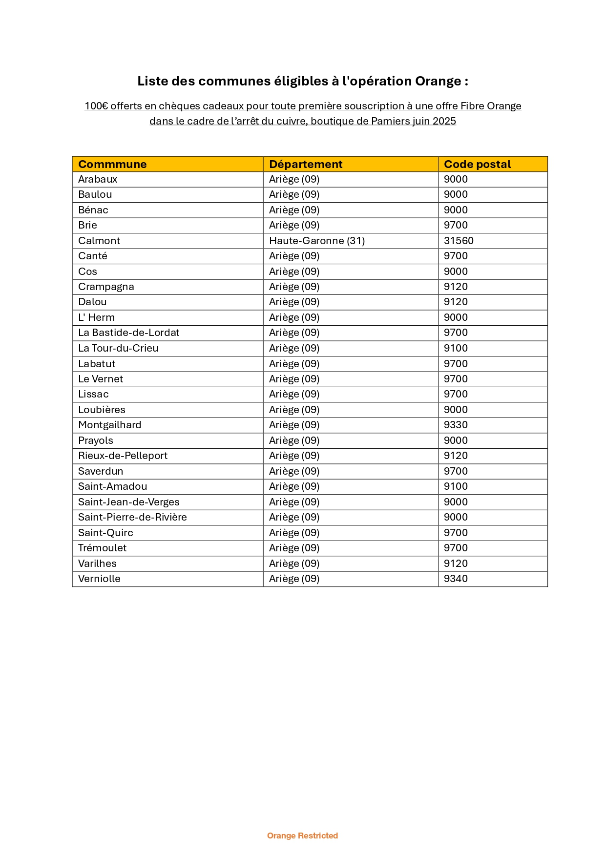 (1) 100€ offerts en chèques cadeaux pour toute première souscription à la Fibre Orange entre le 15 juin et le 12 juillet 2025 réalisée dans la boutique Orange de Pamiers